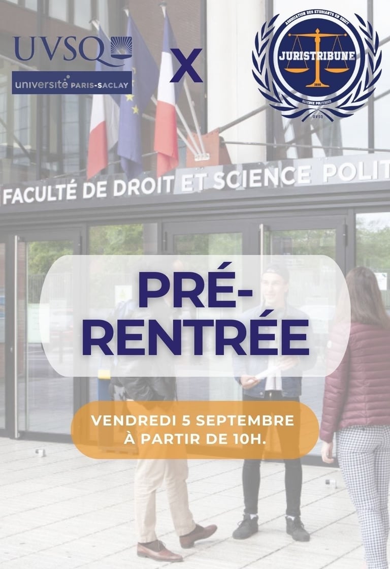 Le vendredi 5 septembre de 10h à 15h a lieu la pré-rentrée de la Faculté de Droit et Science Politique de l'UVSQ, l'occasion de vous familiariser avec le cadre étudiant.
