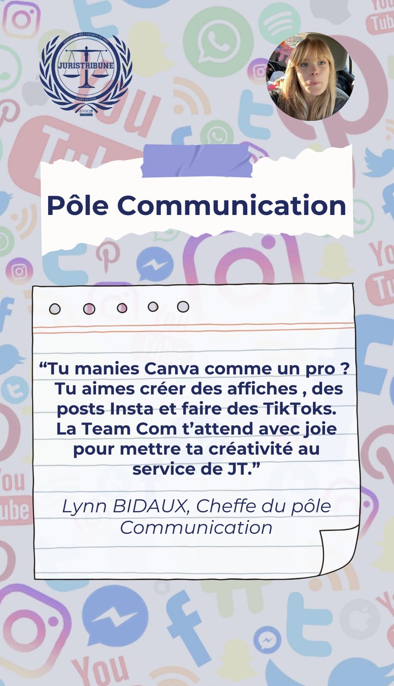 Tu as envie de rejoindre notre association et ainsi organiser les évènements dans une ambiance conviviale ? Ça tombe bien, Juristribune recrute ! Pour porter notre magnifique pull bleu, tu dois passer un entretien (aucune pression, ne t'inquiètes pas). Tu as jusqu'au 3 octobre 2025 pour proposer ta candidature.