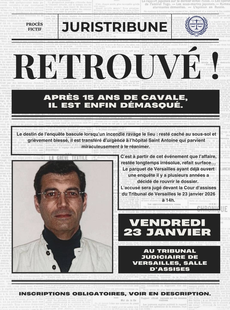 🚨 EXCLU JURISTRIBUNE 🚨 Vendredi 23 janvier, assistez à un procès fictif inédit de Xavier Dupont de Ligonnès : et si l’un des dossiers criminels les plus marquants était enfin jugé ? ⚖️👀 Un événement à ne pas manquer.